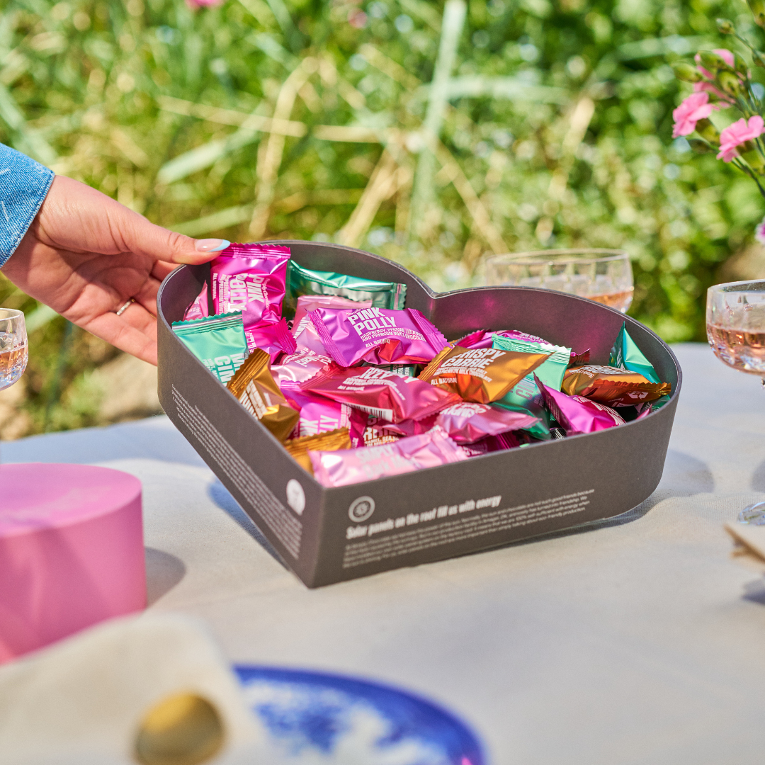 Vi har også et fristende udvalg af premium chokoladebarer, som du kan beholde helt for dig selv. Uanset om du er til fyldte chokolader med knas og karamel eller massiv chokolade med havsalt og nødder, vil du med sikkerhed finde mere end én variant i shoppen, som vil få dit mundvand til at løbe. Bland dine yndlings chokoladebarer og chokoladeplader stykvis eller kast dig ud i spændende smagseksplosioner med vores bar kits og blandede kasser med små appetitvækkende mini-chokolader i bites, hvor du kan sætte tænderne i alle vores eksklusive smagsvarianter med enten mørk chokolade, lys chokolade eller hvid chokolade. Skabt med ærlige og redelige kvalitetsråvarer af danske chocolatiers.