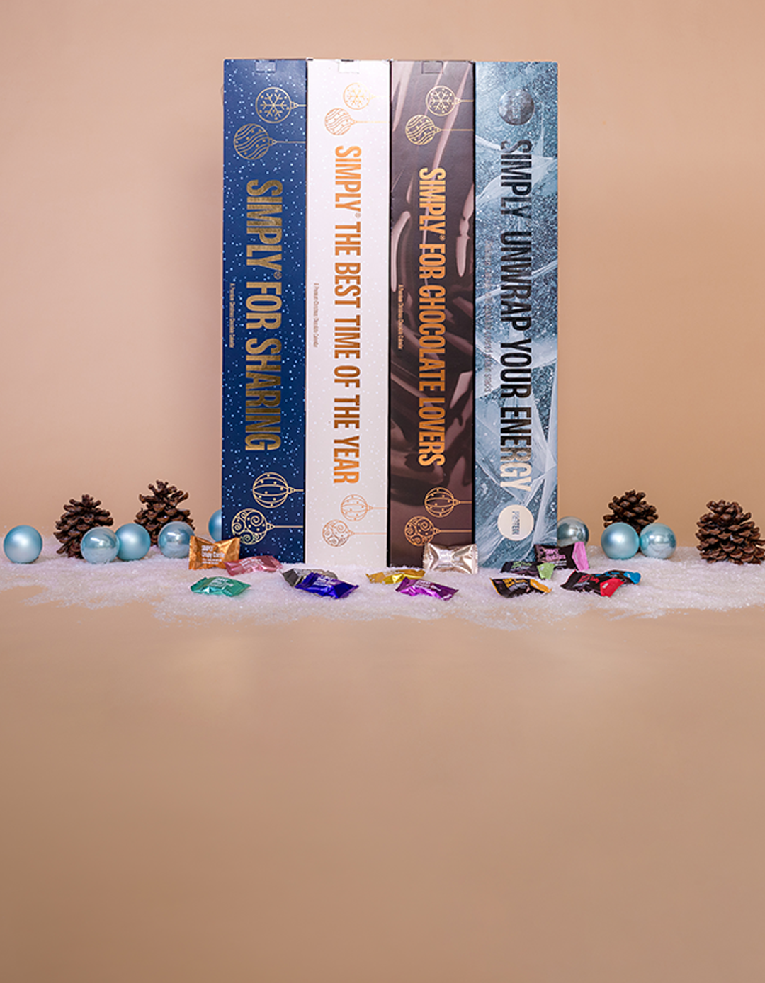 Chokoladen fra Simply® har både holdning og attitude, og du kan være sikker på, at den er produceret med respekt for både mennesker og vores jordklode. Forkæl dig selv med vores limited editions, hvor du finder de unikke af vores fristelser i glittet papir, som er på besøg i vores faste sortiment her og nu. Vores smukt indpakkede chokolader er et sandt farvemekka og emballagen taler sit tydelige sprog, for æskerne fra Simply® indeholder nemlig noget helt ekstraordinært.