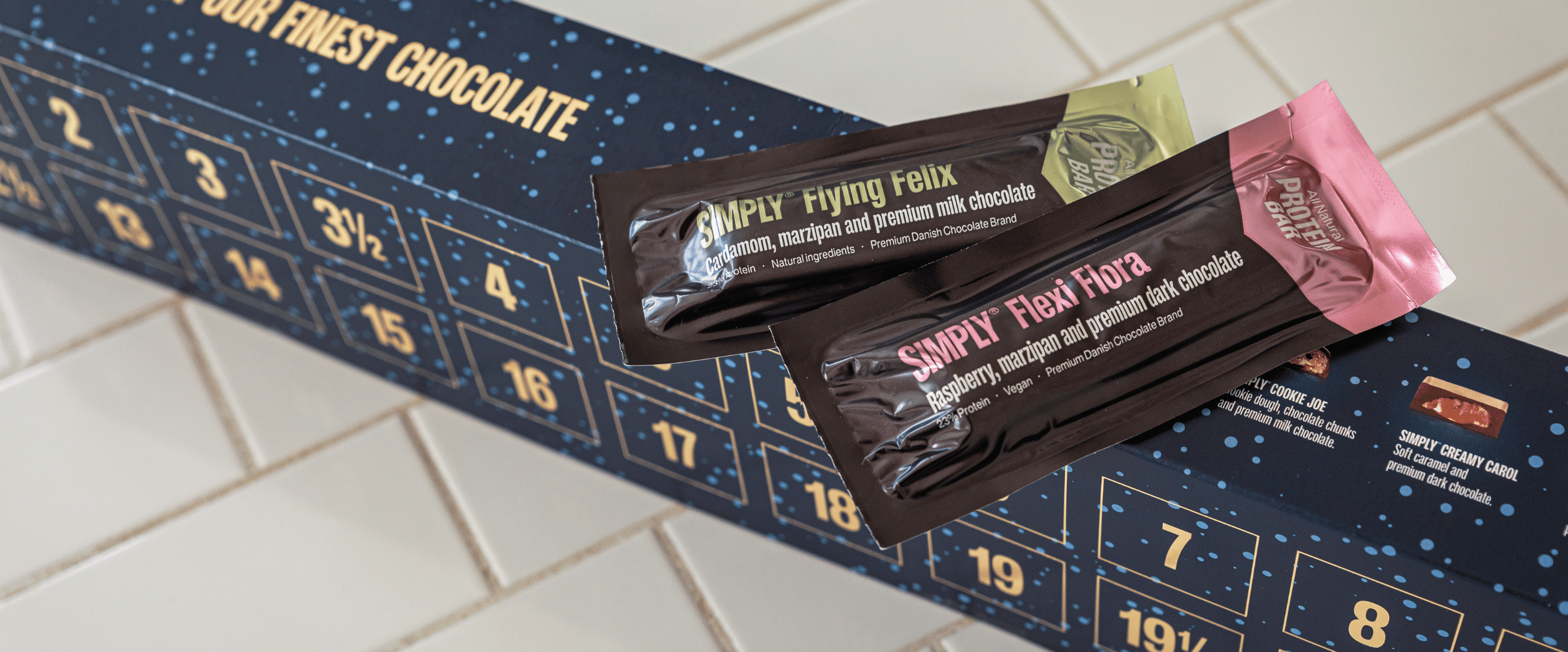 Køber du en chokoladejulekalender, får du 2 proteinbarer med.