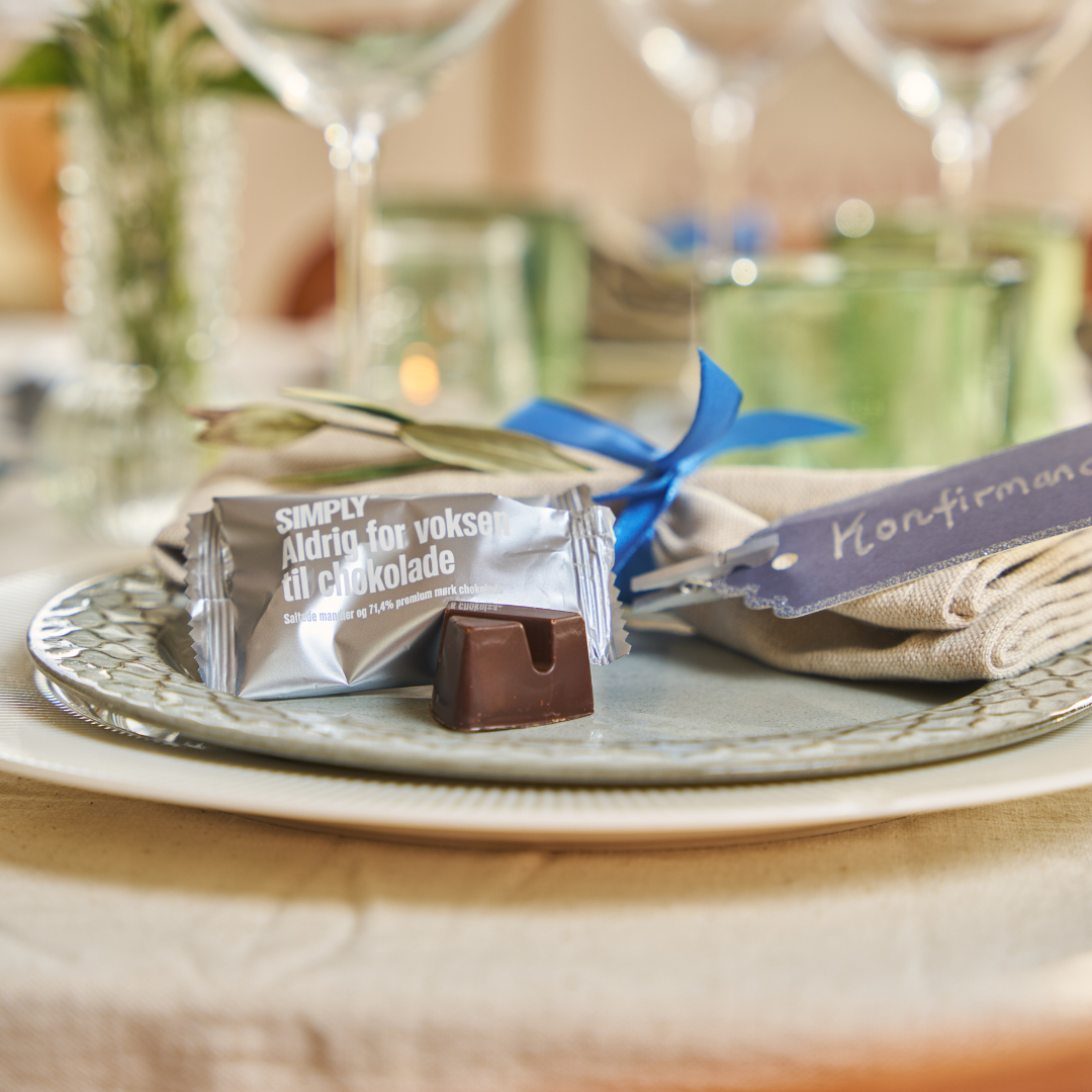 Bestil chokoladen til konfirmationsfesten i dag og skab en uforglemmelig fest for konfirmanden. De smukke bites pynter både på bordet og spreder glæde blandt gæsterne - børn som voksne. Fordi, selvom konfirmationen markerer overgangen til de voksnes rækker, betyder det ikke et farvel til barndommens glæder. Specielt ikke chokoladen!