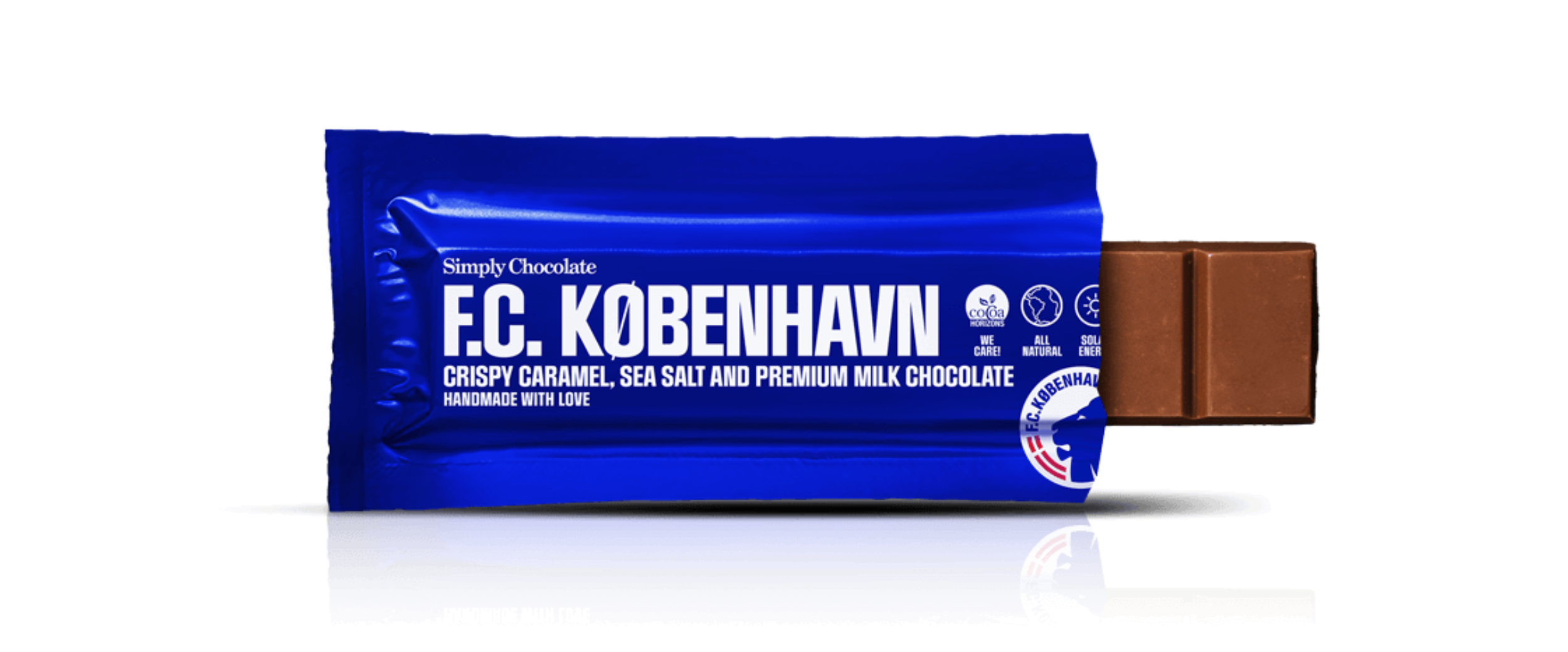 Et stolt samarbejde mellem to københavnervirksomheder. Alle gæster i Parken kan nu nyde F.C. København chokolade- og proteinbarer. Se hele samarbejdskollektionen her.