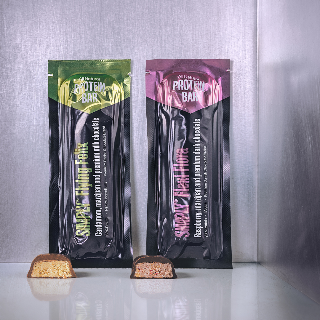 Resultatet er to proteinbarer, der er skabt med naturlige ingredienser, fri for kunstige sødestoffer og fulde af smag.