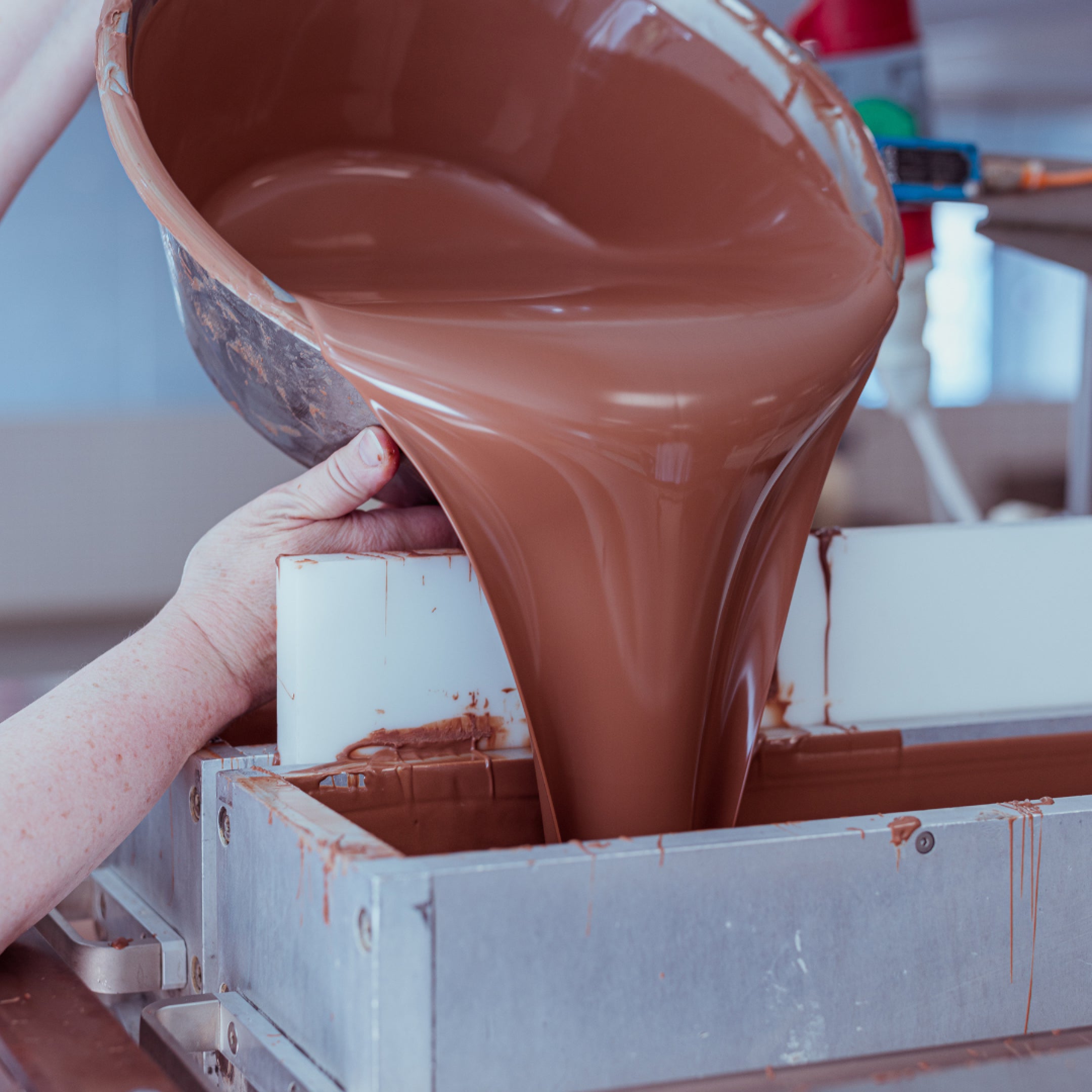Nogle ting ændrer sig aldrig. Her på fabrikken mixer vi stadig vores chokoladeblandinger med håndkraft og gode overarme. Vi vejer hver enkelt ingrediens af nøje i små skåle - ikke for meget ikke for lidt. Hvorfor? Jo, vi mener, vi bedre kan ramme den rette balance mellem naturlige ingredienser og premium chokolade, når vi har håndværket i hånden og øjne på processen - i stedet for blot at trykke på en knap. Vi er detaljeorienterede, nørdede og gør os umage. Og vi mener faktisk, vores håndværk er med til at skabe den simple, ægte og naturlige oplevelse, vi hver dag stræber efter.