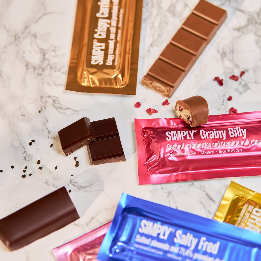 Ville det ikke bare være skønt med forår og sommer hele året rundt? Simply® Minty Cindy får hurtigt dine tanker hen på fuglesang, spirende blomster og duften af sommerregn. Oplev forårets magiske øjeblikke i en samlet smagsoplevelse. Omringet af premium mørk chokolade møder du et indre af hvid chokolade med et let hint af frisk mint blandet med matcha the og knas.